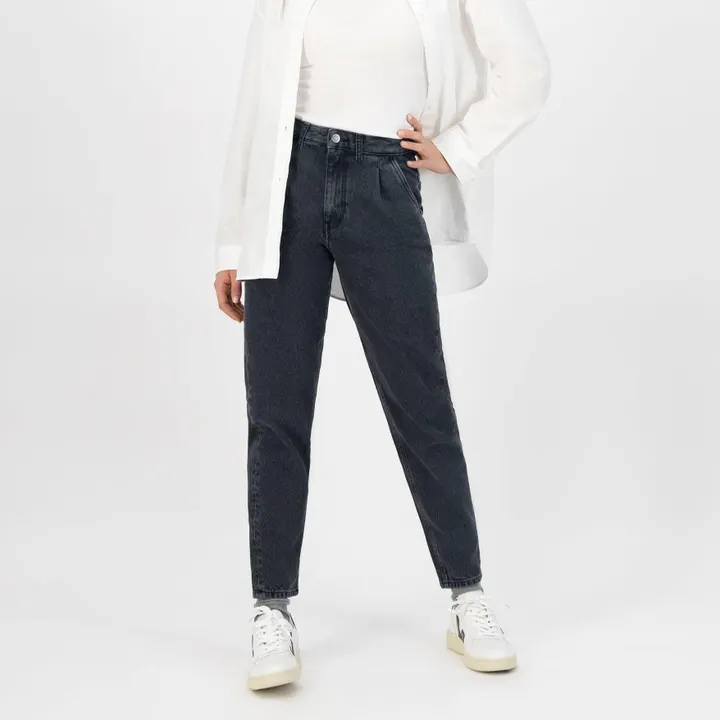 廃棄されたジーンズなどのリサイクル素材およそ40%とオーガニックコットンからできた糸から新しいデニムを生産。ボタンやリベットは100%ステンレス製を使用。