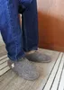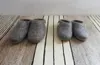 アンダイドプラスの人気商品のフェルトスリッパ。 ウール100%の手作りフェルトのスリッパは空気をたくさん含んでとっても暖かいのに蒸れません。 また縫い目がないことから足の形にしっかり馴染むのがハンドメイドのフェルトスリッパの良さです。 裏底には滑りにくい茶色のスエードを縫い付け、しっかりと作ってあります。 フェルトなのでクッション性もあり、すっぽりと足を包んでくれるので、普通のスリッパのようにパカパカせずおうちの中でも歩きやすく安心です。 リピーターも多く、一度履くと手放せません。 北欧風のシンプルなデザインでひとつひとつ丁寧に作られています。 同じデザインでレディースサイズもあります。 クリスマスプレゼントや引っ越し祝い、結婚祝いとして男女揃えてプレゼントするのもおすすめです。 手作りなので、サイズは少しバラつきがありますが、 やわらかい素材なので、履くうちに足の形になじんできます。 ●フェルトの製作について すべて手仕事で、羊毛に石鹸水のようなアルカリ性の水溶液を含ませて圧力をかけ、もんだり巻いて転がしたりして縮絨(しゅくじゅう)させ成形します。縮絨にはたいへんな手間隙がかかります。 プラスのシルエット部分は針で何度もさし突っつき、フェルト地にからませていくニードルポイントで一つ一つ手で作られています。縫い目がないのが特徴です。