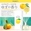 ニオイの原因に直接働きかける消臭リードディフューザー。 まるで香水のように時間の経過により変化する香調アートはアロマ専門メーカーのこだわり。 フィトンチッド(ヒノキ精油)、グロブル®(ユーカリ精油)などの植物由来消臭成分がニオイの原因に働きかけお部屋を快適な空間に。 置き場所を選ばないコンパクトサイズでも香り長持ち。芳香持続期間は約2~2.5ヶ月(使用環境や季節によって異なります) 高知県産ユズ精油を配合したみずみずしく爽やかな香りで、おうち時間を楽しく快適に!