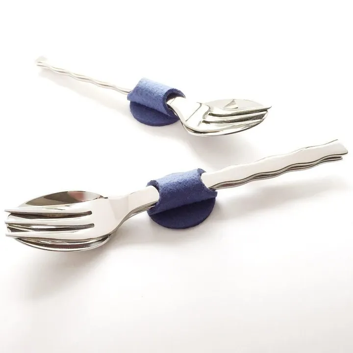 ミラー仕上げのティースプーン、ケーキフォークの2点をクリップでまとめたセットです。ティータイムを楽しくするアイデアいっぱいのオリジナルなセットです。 収納する時,テーブルにレイアウトする時にクリップがアクセントとなり楽しさが広がります。 新潟燕市の製造販売会社に小ロットでの製造をお願いしているこだわりのティースプーン、ケーキフォークはウェーブラインにより手にフィットし楽しいデザインとなっています。そしてミラー仕上げは目を見張るクォリティーの高さです。クリップはウォッシャブルフェルトを採用し洗濯可能、清潔を保ちます。パッケージ入りのセットは自分へのご褒美,親しい友達へのプレゼントにもおすすめです。