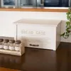 北海道 旭川市の自社工場で製作しています 角食パン6枚切りが2パック収納できます。 インスタントラーメンや調味料のストックなどを入れても◎。 キッチンをおしゃれな印象に。 ■商品サイズ 約 横幅330×奥行188×高さ187mm  (板の厚みなどで、多少の誤差が出る場合があります) ■材質 合板使用。 木目、色合いなどが1つ1つ違います。 ※背面上部分に1.5cm幅の換気孔があり、 中は完全に密閉されません。