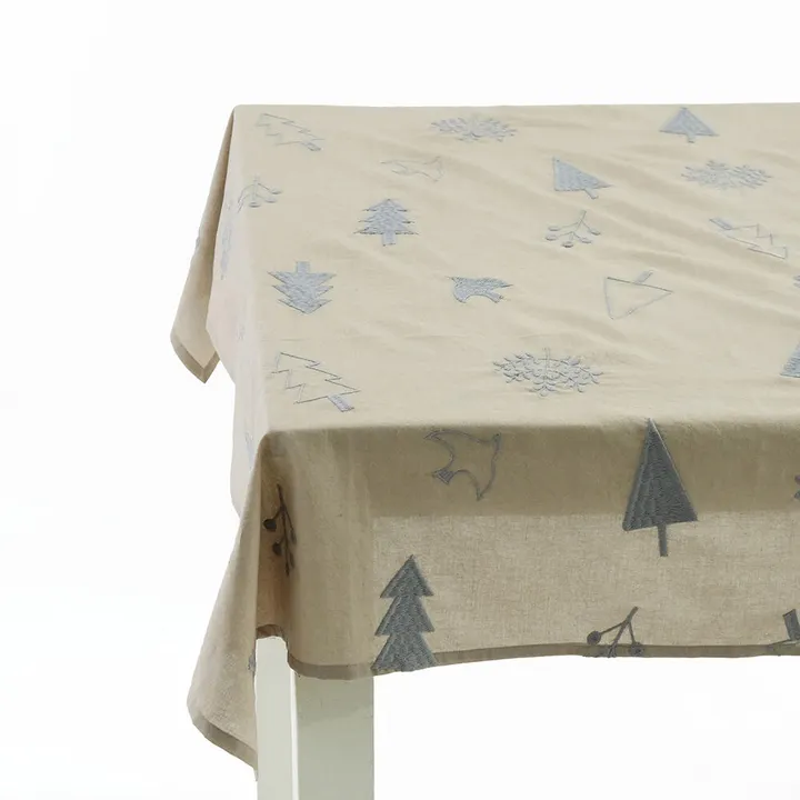 テーブルクロス┃北欧の森をイメージした刺繍のテーブルクロス(100×100cm) BE(ベージュ)