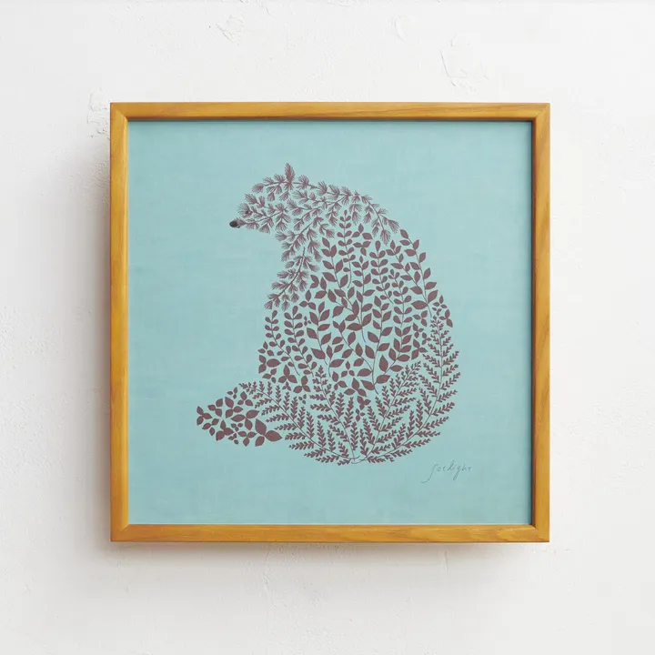 人気のふわふわの動物を植物で表現した『Fluffy』シリーズ。 シンプルなカラーリングで様々なお部屋に馴染みます。 ポスターがセットしてあり紐も付属しているので、すぐにご使用いただけます。 シンプルで木の温かみのある30cm角のフレームは、付属の紐を裏面に取り付ければ画鋲やフック付きのピンでどこでもかけられます。 メッセージカードのシリーズを見た方から「部屋に飾りたい」「どうやって飾ったらいいか」という声をいただき、サイズを大きくして木のフレームで気軽に壁に飾れる形にしました。 ポスターはオフセット印刷ですが、独特のテクスチャを使って描いているのでアナログ画のような質感を残しています。 1枚ずつ手書きでブランドサインを入れています。 インテリアに合わせやすい木の色を選び、ポスターは和洋どちらの部屋にも飾りやすいワンポイントとなるシンプルな配色を考えました。 好きな動物を選ぶのはもちろん、柄違いや30cmサイズとも2、3枚組み合わせるのもオススメです。 20cmタイプは小さな壁面スペースを明るく飾れ、棚置きではフラワーベースやオブジェなど小物を一緒にディスプレイして楽しめます。 ぜひお部屋のインテリアと一緒にコーディネートしてみてください。 内容:オフセット印刷+木製額装 ポスターサイズ:297×297mm フレームサイズ:315×315×23mm アクリル板、箱入り、紐付