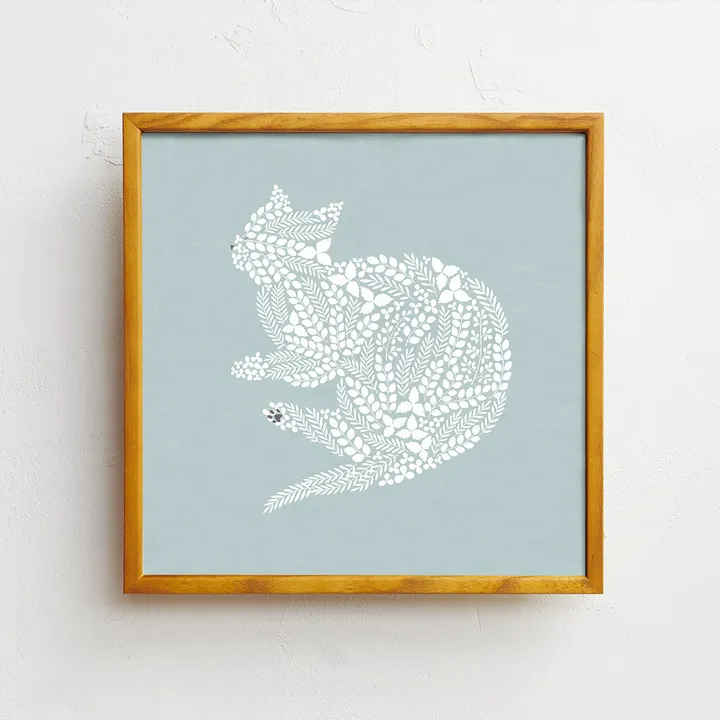 人気のふわふわの動物を植物で表現した『Fluffy』シリーズ。 シンプルなカラーリングで様々なお部屋に馴染みます。 ポスターがセットしてあり紐も付属しているので、すぐにご使用いただけます。 シンプルで木の温かみのある30cm角のフレームは、付属の紐を裏面に取り付ければ画鋲やフック付きのピンでどこでもかけられます。 メッセージカードのシリーズを見た方から「部屋に飾りたい」「どうやって飾ったらいいか」という声をいただき、サイズを大きくして木のフレームで気軽に壁に飾れる形にしました。 ポスターはオフセット印刷ですが、独特のテクスチャを使って描いているのでアナログ画のような質感を残しています。 1枚ずつ手書きでブランドサインを入れています。 インテリアに合わせやすい木の色を選び、ポスターは和洋どちらの部屋にも飾りやすいワンポイントとなるシンプルな配色を考えました。 好きな動物を選ぶのはもちろん、柄違いや30cmサイズとも2、3枚組み合わせるのもオススメです。 20cmタイプは小さな壁面スペースを明るく飾れ、棚置きではフラワーベースやオブジェなど小物を一緒にディスプレイして楽しめます。 ぜひお部屋のインテリアと一緒にコーディネートしてみてください。 内容:オフセット印刷+木製額装 ポスターサイズ:297×297mm フレームサイズ:315×315×23mm アクリル板、箱入り、紐付