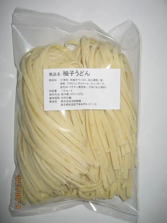 麺生地に四国産(高知・徳島・香川・愛媛県産)柚子(粗みじん切り・細片)をいれました。 柚子の香り、食感をおたのしみください。 天然素材ですので、麺線に局所的に色合いが濃い部分もございます。