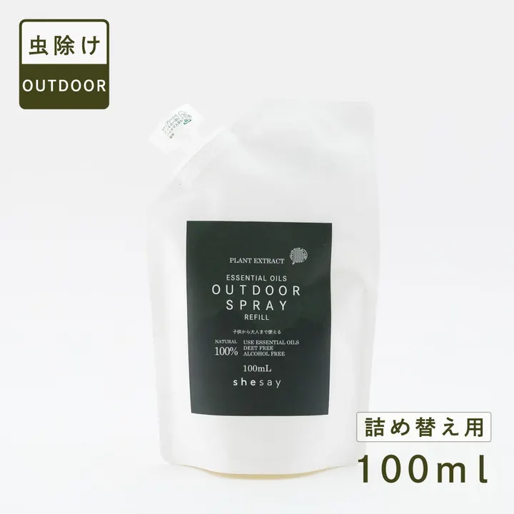 自然由来成分100%で作られたアウトドアスプレーの別売り専用リフィル(詰め替え)です。 ディートフリー、アルコール不使用で、小さなお子様から大人までご使用いただけます。 アウトドアに出かけた時や公園に行ったときなど、家族みんなでお使いいただけます。 *自然由来成分100%配合 *ディートフリー *アルコール不使用 *使用期限:開封後は1年以内 *生後3ケ月よりご使用いただけます。 他の液体と混ぜないでください。用途以外に使用しないでください。 本体ボトルが倒れないように片手で固定し、注ぎ口をボトルへかたむけそのままゆっくり中身をいれてください。 ●肌に異常が生じていないかよく注意してご使用ください。肌に合わないときはご使用をおやめください。 ●化粧品が肌に合わないとき、すなわち次のような場合には、使用を中止してください。そのまま使用をつづけますと、症状を悪化させることがありますので、皮フ科専門医等にご相談されることをおすすめします。 (1)使用中、赤み、はれ、かゆみ、刺激、色抜け(白斑等)や黒ずみ等の異常があらわれた場合 (2)使用した肌に、直射日光があたって上記のような異常があらわれた場合 ●傷やはれもの、しっしん等、異常のある部位にはお使いにならないでください。 ●極端に高温又は低温の場所、直射日光のあたる場所、乳幼児の手の届く場所には保管しないでください。 ●保管状況により天然精油が分離する場合がございますが、品質に問題はございません。よく振ってご使用ください。 ●天然精油を使用しているため、衣類などに大量にスプレーするとシミになる場合がございますのでご注意ください。 ●開封後はキャップをしっかり閉め、1年を目安になるべく早くお使いください。 【虫よけ】【自然素材】【リフィル】【詰め替え】【X2】
