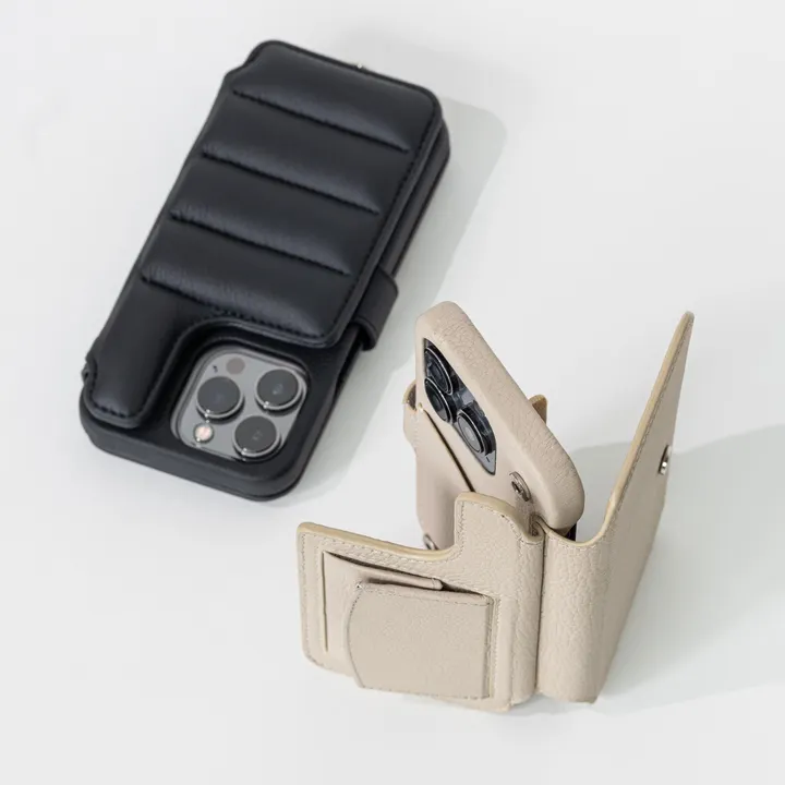 2023年9月より弊ブランドはDemiurvo(デミウルーボ)改めDEMIU(デミュウ)に改名いたします。 それに伴い、DEMIUの名を配したブランドネーム・ロゴが採用されます。 一部商品に関しては、Demiurvoとして引き続き販売いたしますが順次モデルチェンジ予定です。 何卒、ご理解のほど宜しくお願い致します。 <span style="font-size: 0.875rem;">BALLON Deux(バロン ドゥ) フランス語で「風船」を意味するBALLON(バロン)に画面側のフタがついた万能モデル。 風船のようなモコモコしたテクスチャーをデザインしたお財布機能つきiPhoneケース。 上質なレザーの質感と指にフィットする感覚が心地よい、思わず目を惹かれるデザインと質感で存在感抜群のアイテムです。 フタがついているため、スマートフォンをしっかりと保護します。また、全面高品質なフランス産カウレザーで作られており、耐久性があります。 開閉式のデザインでボタンフックも 付いている ため、スマホの操作や収納も簡単に行えます。 画面側のフタの内側には、収納力抜群な便利な機能が備わっています。カードスロットが2つあり、クレジットカードやICカード、会員カードなどを収納することができます。 また、隠しポケットが1つ付いているので、レシートや紙幣、その他の小物を忍ばせることも可能です。 背面側のフタ内側には、右扉の内側に2段のカードスリットと隠しポケット、左側に収納ポケットを備えた便利なアイテム。 蓋をスタンドにして横置きできるのでYouTubeやテレビ会議にも便利。 ショルダーなどを付けられるD型リングが付いているので、別売りのストラップとのセットや色違いでコーディネイトするのもおすすめです。 実用的なデザインと優れた保護機能を兼ね備えています。 ※ストラップは別売りです。 <span style="font-size: 0.875rem;">ー仕様ー ・素材フランス産カウレザー ケース部分:ポリカーボネート 金具:ニッケル ・重量 約102g