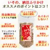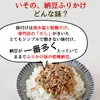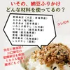 ーーー 【送料に関して】 商品合計が「60袋以上」もしくは「2ケース以上」で送料は弊社負担となります。(北海道・沖縄は除く) ーーー 納豆好きにはたまらない! 国内産大豆と海の幸を使った無添加ふりかけ。 川口納豆の乾燥納豆をふんだんに使ってふりかけ味の納豆に仕上げています。 ご飯、サラダ、パスタなどに。 【栄養成分(100g当り)】 熱 量:362kcal タンパク質:46.0g 脂 質:11.3g 炭 水 化 物:20.4g 食塩相当量:10.4g 【塩ってとっても大事!天然塩を使っています】 「無添加で作っている」というメーカーさんは多くいらっしゃいます。 無添加といってエキスを使うのは論外ですが(これはもう違法なんですけどね)、味付けに使っているものはどんなものを使っているの?って気になる方もいらっしゃるのではないでしょうか。 弊社で加工しているワカメの味付けにはすべて天然塩を使っています。 加工食品に多く使われる精製塩ではなく天然を使用しているため自然のミネラル分と旨味も豊富に含まれています。 精製塩とは、塩化ナトリウム純度99%以上の過精製塩のことです。 これはイオン膜透過法という方法で分子レベルでミネラルなどがすべて除去されています。 その中には、ナトリウムの排出に必要なカリウムなども多く含まれます。 このような精製塩ばかりを摂取していると、ナトリウムの過剰摂取になってしまいます。 そのためカネジョウでは毎日安心して家族の皆様に食べていただけるよう、弊社の加工においてはすべて天然塩を使用しています。