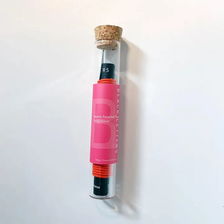【String Incense 紐お香】神聖なる香り、お香。そんなお香を身近に感じられるように。 紐に火をつけるとお香のように香りを楽しむことができる。プレゼントのラッピング用に使用しても、どんな用途でも使用できます。 何気ない日常のものから香りを感じられる。遊びごころのある商品になります。 <香りの種類> 【Warm-hearted flower ウォームヒーテッドフラワー】 心を落ち着かせる上品な花の香り 【Smoky lavender  スモーキーラベンダー】スモーキーな包み込むような重厚感のあるラベンダーの香り 【Spicy Agarwood スパイシーアガーウッド】沈香にコリアンダーを加えたスパイシーかつウッディーな香り  【 Midnight Ocean ミッドナイトオーシャン】 夜の海の静けさが漂う眠りを誘う中にも清涼感のある香りで甘さも演出    【Foggy Forest フォギーフォレスト】霧の中に迷い込んだ少し重たいウッディーな香り <内容量> 規格:2mm × 2m巻 <ブランド巾着の中に、ガラス瓶120mm×30mmに紐お香が収納されコルクで封をしてあります。説明書と不燃シート付き> <使用方法> 1. 瓶から紐のお香を取り出します。 2.使いたい長さに紐をカットしていただくか、カットせず付属のお香クリップをつけてご使用ください。 3.ひもの先端に火をつけすぐに炎を吹き消します。 4.付属のお香マットを不燃性のお皿の上に置いてご使用ください。 ※お香マットを敷かない場合、お皿や置物が熱を吸い取ってしまうため、火が燃焼しない可能性があります。 燃焼時間目安 10cmで10分になります。1mで100分の計算です。