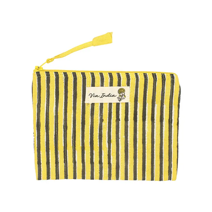 キルトポーチ フラット ストライプブロックプリント イエロー