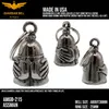アメリカ製ガーディアンベル社製ガーディアンベルです。 MADE IN USA アメリカ製 交通安全 魔除け 御守り ガーディアンベル アメリカのライダーの間には、事故や、転倒の原因は「道路にひそむ悪魔」によるいたずらだという伝説があります。悪魔は走る者に悪戯やトラブルを運んできます。このベルは美しい音色で悪魔たちを追い払うと言われ愛されています。そんな悪魔のいたずらを防ぎ、御守りとなるのが、守護者のベルという意味を持つガーディアンベル。 日本でも鈴の音(ね)は神道では魔除けの音と言われています。ピューター製の鈴でいい音色でガーディアンベルはデザインも様々あります。 またガーディアンベルにまつわる伝説として、プレゼントとして送られたベルの効果は、自分で手に入れたものの2倍になると言われています。 それゆえに彼氏・彼女・友達・家族へのプレゼントとしての人気も非常に高まっています。 シルバーアクセサリーのようにおしゃれに装着できて素敵な音色を奏でるガーディアンベル。 バイカー以外にも自転車や旅・交通安全のお守りとしてお使いいただけます。 カバン・ランドセル・キーホルダー・ペットの首輪等に付けてお使いください!! ※タイラップ等でバイクのフレームにも簡単に取り付けできます。 アメリカンモデルだけではなく、旧車ファン、レプリカライダーまで、さらにバイクだけでなく、自転車や車にもピッタリな御守りとなっています。 アクセサリーとしても人気で、アイディア次第で車体だけでなく、キーホルダーや鞄など、どこにでも付けておしゃれに楽しめます。