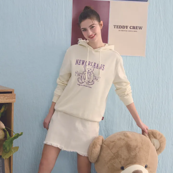 ・無駄のないすっきりとしたデザインで頻繁に選ばれるアイテム ・可愛らしいテディベアのグラフィックとレタリングでブランドのイメージを強調 ・ベーシックなゆったりシルエットで体型カバー可能 ・フード付きスタイルでカジュアルな印象 ・裾と袖口はリブ仕様で安定感のある着用感 ・前折りと形状保持テープで丁寧な仕上げ