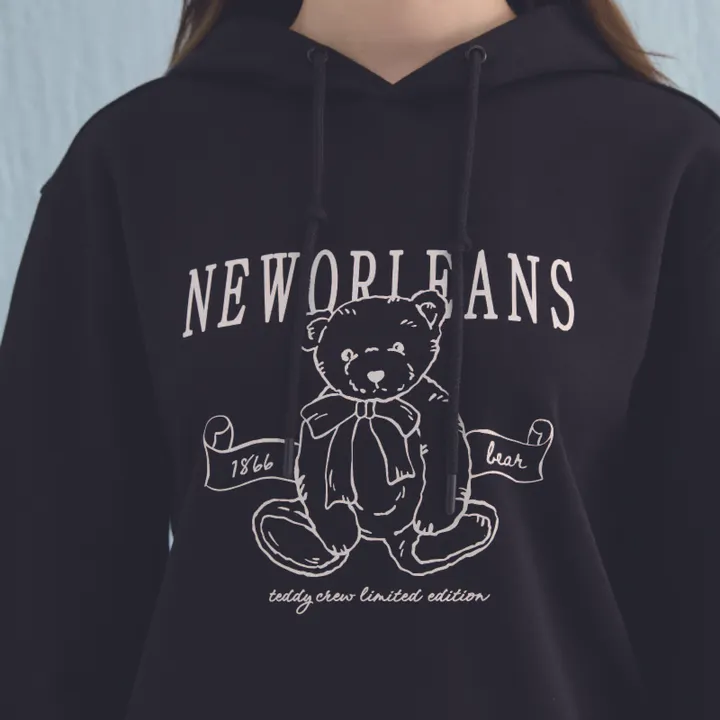 ・無駄のないすっきりとしたデザインで頻繁に選ばれるアイテム ・可愛らしいテディベアのグラフィックとレタリングでブランドのイメージを強調 ・ベーシックなゆったりシルエットで体型カバー可能 ・フード付きスタイルでカジュアルな印象 ・裾と袖口はリブ仕様で安定感のある着用感 ・前折りと形状保持テープで丁寧な仕上げ