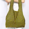 千鳥格子、ハウンドトゥース、パピートゥースなど様々な呼び方があり、英国、スコットランド発祥のチェック柄。黄色×ブラックの色合わせがカジュアルです。 パターン カインドバッグのオリジナルデザイン。カラフルな色使いやユーモラスなデザイン、女性だけでなく、男性にお勧めの柄までご用意しております。 ミディアム 100%ペットボトルを再生した生地を使用したエコバッグ。ミディアムサイズは、約6本のペットボトルからできています。 肩に掛けて持つことができ、どんなシーンにも活躍する大容量サイズ。