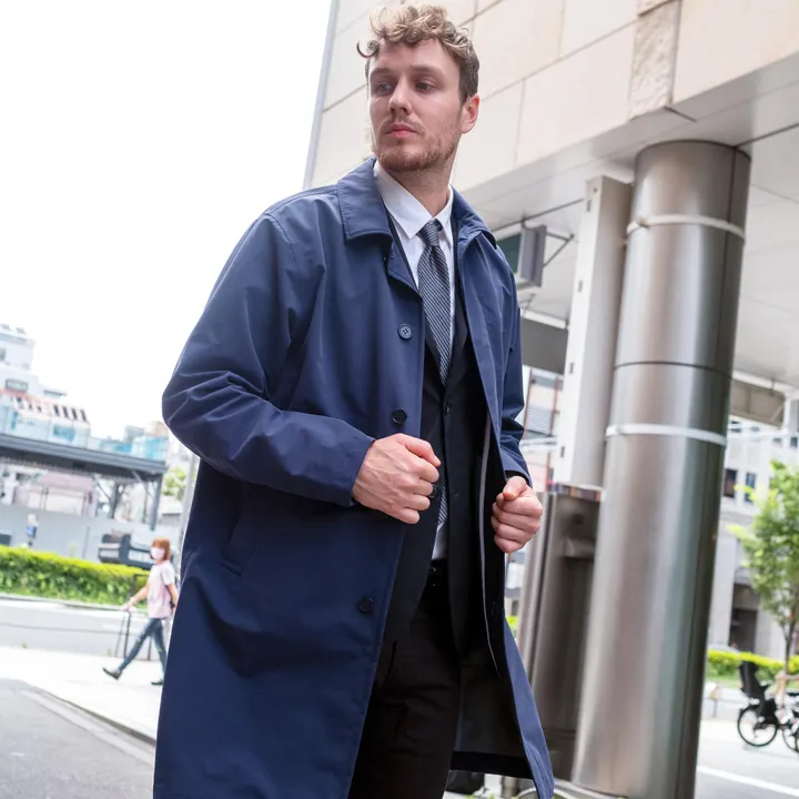 【Silver A' Design Award受賞】 イタリアで行われる世界で最も大規模かつ影響力のある国際デザインアワードの一つ「A' Design Award & Competition 2022-2023」において、上位3-5%に与えられる「Silver A' Design Award」を受賞しました。 【「lifehacker(ライフハッカー)[日本版]」「GIZMODO JAPAN(ギズモード・ジャパン)」「no-ma(ノーマ)」掲載】 「万能」このコートを一言で表すなら、この言葉。 「雨」でも「晴れ」でも 「フォーマル」でも「カジュアル」でも あらゆるシーンに対応できる「全天候型万能コート」です。 コンセプトは『"ハレ"の日に着る、レインコート』 『"ハレ"の日に着る、レインコート』には2つの意味があります。 一つ目は『"晴れ"の日に着る、レインコート』 「レインコート」と呼んでいますが、"蒸れない"「透湿性8,000g/㎡/24hr」の素材を使っていますので、"蒸れずに"「普通のコート」として使っていただけます。 そして、ゲリラ豪雨などが来ても「耐水圧20,000mm」「JIS規格の最高水準である撥水性5級」という高スペックの「レインコート」として使えます。 二つ目の意味は『"ハレ"の日に着る、レインコート』 結婚式、入学式、卒業式、授業参観など、「特別な行事の時(ハレの日)」にも着ていただけるような「高級感のある素材」を使用し「フォーマルなシルエット」に仕上げました。 「フォーマル」なだけではなく、フードをつけるとぐっと「カジュアル」になりますので、普段着としても使っていただけます。 仕事帰りに「釣り」なんて使い方も。 「雨」でも「晴れ」でも ■嵐に耐える「耐水圧20,000mm」 ■最高水準の「撥水性5級」(JIS規格) ■蒸れない「透湿性8,000g/㎡/24hr」 ■風をシャットアウトする「防風性」 ■取り外し可能なフードも「止水ファスナー」 ■ポケットの中身を守る「止水ファスナー」 ■もちろんフロントも「止水ファスナー」 ■縫い目は「止水テープ」で防水加工 「フォーマル」でも「カジュアル」でも ■伝統的シルエット&現代的アレンジ ■高級感ある質感の「高級素材を使用」 ■「ビジネスシーン」でも使用可能 ■フードをつければ「カジュアル」に ■軽く羽織っても見えない「ファスナー」 ■襟を立てても見えない「ファスナー」 ■大手アウトドアブランドの製造も請負う技術力の高い日本の縫製工場で縫い上げました。