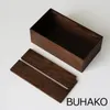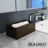 Made in Aomoriの木工ブランド「BUNACO」のコントラクト向けライン「BUHAKO」。 曲線的なデザインの「BUNACO」に対し「BUHAKO」は直線的なデザインが特徴です。 ホテルのパウダールーム用に開発したシンプルなデザインのペーパータオルボックスです。 サイズ:260×140×H100mm カラー:ダークブラウン 素材:天然木(タモ材、突板貼りMDF) ウレタン塗装仕上げ 原産国:日本 ※ ペーパータオルの中には、一部収納できない製品がありますのでご注意ください。 ※ 水性塗料の匂いが残る場合がありますが、国の安全基準を満たした塗料を使用しておりますので安心してお使いください。開封後、通気の良い場所にさらすことにより臭気は無くなります。 ※ お手入れは、水をしぼった柔らかい布でお拭きください。破損の原因となりますので水に浸さないようご注意ください。 ※ 限りある資源を大切にしロスを減らすために、材料の選別をせずに製作しています。杢目や節、色みなど風合いが異なる天然木ならではの表情をお楽しみください。 ※ 手作業で製作しているため表記サイズより若干の誤差が生じる場合があります。