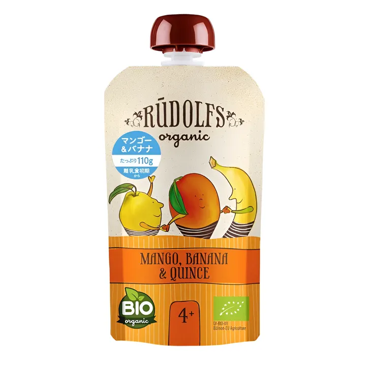 ●オリジナリティあふれるオーガニックフルーツピューレ ラトビアより日本初上陸のオーガニックブランド「Rudolf」。 創業以来、家庭的な味で栄養のあるオーガニックフードを世界中に届けています。 ●満足感たっぷりの110gサイズ 他ブランドと比較してもサイズが大きいのが特徴の一つです。 パウチタイプなので、外出先のおやつにおすすめです。 また、賞味期間も1年半(*)なので、保存食としてストック頂けます。 *製造日より1年半のため、お届けするのはそれよりも短くなります。 [名称] フルーツのベビースムージー マンゴー&バナナ [原材料名] 有機マンゴー、有機バナナ、有機マルメロ [内容量] 110g [保存方法] 直射日光を避け常温で保管してください [適齢] 離乳食初期~(乳児用規格適用食品) [取得認証] EU有機認証、有機JAS [輸入者] 株式会社 POT Trading