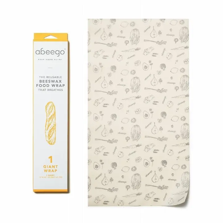 ※本国でのブランド終了に伴い、在庫限り販売終了となります。 ※こちらの商品はパッケージに箱潰れ等のダメージが見受けられ、また旧デザインのため、お買い求めいただきやすい価格でご案内しております。商品自体は現行品と変わりません。 【ジャイアント (ラージ レクタングル) 1枚】 フランスパンやセロリの束をそのまま保存するのにぴったりな、大きいサイズ。 バットやお鍋の蓋にもどうぞ。 長方形のレクタングルシリーズは、袋状にしてバスケットのようにして使用することもできます(画像6枚目参照) \\ ナチュラルでサステイナブルなabeegoのビーズワックスラップを使用して、              健康的で地球にも優しい食生活を送りませんか? // 【100%天然素材のみで作られた新しいかたちの食品保存用のラップ】 ”生きている食べ物の摂取=リビングフード※“が注目される中、 その保存方法を巡り、ラップされた食材に呼吸をさせることができ、 また健康的で地球に優しい保存方法が無いかと考え出されました! ※野菜や果物等の生きている酵素や栄養素を積極的に取り入れる、世界で注目されている食事法 生地を使うことで、一般的な使い捨てのラップフィルムにはない、程よい通気性を保ち、 ミツロウやホホバオイルの天然の保湿性と抗菌性により、包んだ食品の鮮度を長持ちさせます。 その結果、食品に含まれる栄養素だけでなく、 その栄養素を身体に吸収し消化・代謝を促すために不可欠な酵素の持ちも、各段に良くなるのです。 使い方もいたって、シンプル。 冷水で手洗い後、乾かしていただくだけ! 身近なところから、「シングルユース=使い捨て」を減らしていきませんか? ――――――――――――――――― こんな方にオススメ! ☑環境問題に関心の高い方 →このビーズワックスラップを使用し、食品の持ちが良くなる事で、フードロス削減にも一役買います。冷水での手洗いで、約1年ほど繰り返し使用可能です。また最後は、土に還し堆肥にすることも出来ます。 ☑エコやサステナブルな生活をこれから始めたい方 →abeegoのビーズワックスラップを使用することで、ラップフィルムゴミを減らすことが出来ます。お手入れや保管も容易なので、毎日の生活にすぐに取り入れられます◎ ☑健康に配慮されている方 →包んだ食品の鮮度を長持ちさせ、食品に含まれる栄養素と酵素の持ちが格段に良くなります。 ☑大切な方へのプレゼントに ―――――――――――――――――