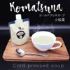 ●コールドプレススープ パステルグリーンのスープ 女性に優しく美味しい♪ 女性に必要な栄養素のカルシウムや鉄分をほうれん草よりも多く含んでいるとしても有名な小松菜を使用したスープです。きれいな淡いグリーンスープは、小松菜特有のアクの少なさで飲みやすく、β-カロテンも豊富なので、摂取するとβ-カロテンは小腸上皮細胞でビタミンAに変換されるのでプロビタミンAともよばれ、抗酸化作用および免疫賦活作用があると報告されています。 お召し上がり方(解凍方法) 開封せず、お水をためた容器の中で約20分解凍してください。 カップなどに移します。 電子レンジ(600W)で約4分加熱して完成です。 湯せん解凍でもOK 開封せず、冷凍のまま沸騰したお湯に入れ、約5分温めます。 お湯から取り出し、カップなどに移して完成です。 ※容器(スパウトパック)のまま電子レンジでは加熱できません。 ※翌朝飲む場合は、冷蔵庫に入れて頂くと翌朝解凍されます。