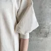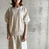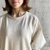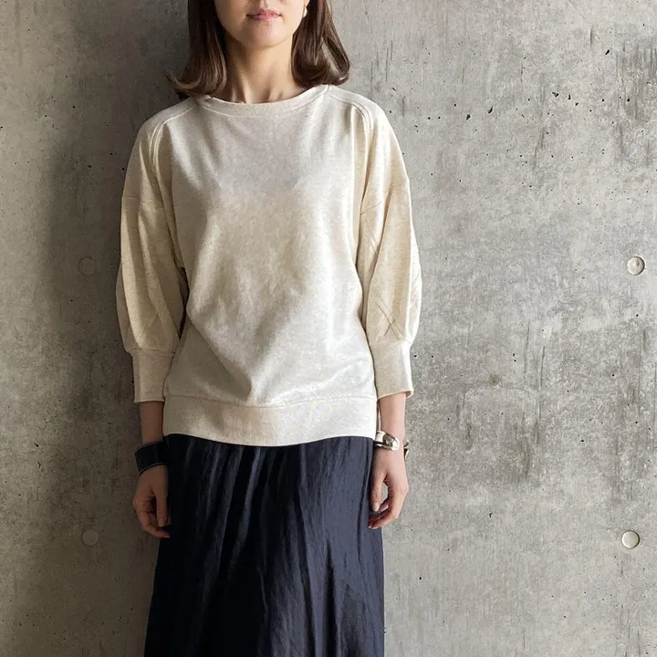 【日本製】ガーゼ裏毛カーブ切替7分袖トレーナー オートミール
