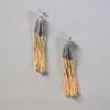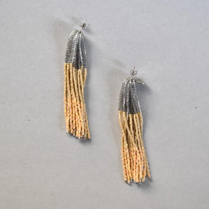 【芒】 日当たりがよく乾燥した草原に多く育つススキ銀白色の穂がやさしく揺れる草原は 日本の秋を象徴する原風景のひとつです 古来日本では 背の高い稲穂は神様が降り立つ 依り代(よりしろ)だと信じられてきたため 中秋の名月の夜 満月に模した月見団子といっしょに 供えられます --- 耳飾りは2サイズご用意いたしました なりたい自分にあわせてお選びください 3色のビーズのグラデ―ションが 肌になじみつつ華やかに彩ります *こちらの商品は、お客さまの耳の形状やピアスホールの位置によっては、装着位置がご満足いただけない場合がございます。 material SILVER925(ピアス金具)、ガラスビーズ、銀糸、真鍮、チタン、フェルト *シルバービーズはパラジウムッキ加工を施したものを使用しております size 約10x85mm weight 約4.8g *CACICOの商品は全て1点1点制作しているため、個体差があり、商品写真と差がある場合がございます。ご了承の上、ご購入ください。 *金属アレルギーの方はご使用をお控えください *受注生産のため、ご注文確定後1週間~10日以内に商品を発送いたします