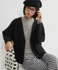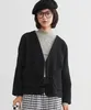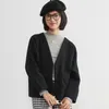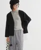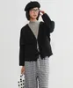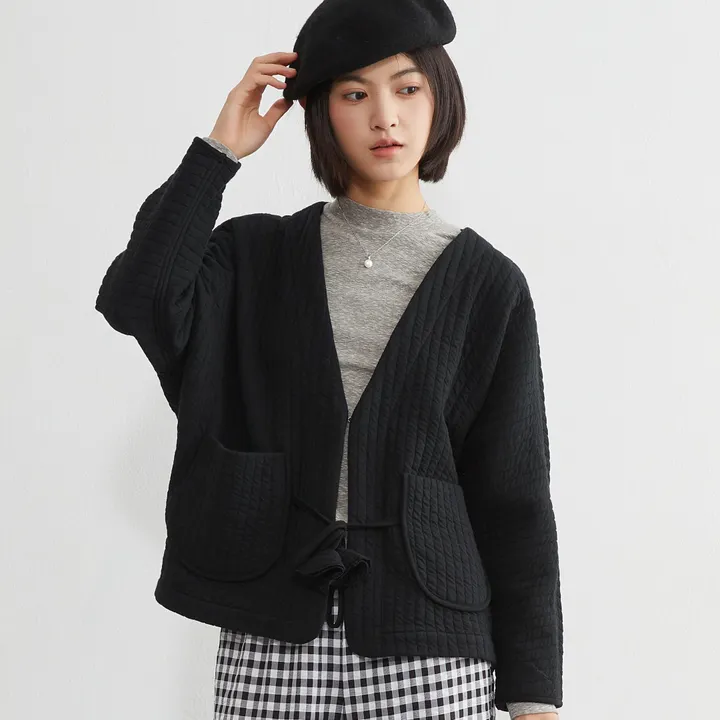 ストライプキルティング 中綿ジャケット カーディガン風 リボンポケット付きアウター BLACK/FREE