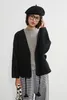 ◆生地 程よく中綿を入れたストライプキルティング生地を使用。ふんわり軽く、着心地はソフトであたたか。見た目にも優しい凹凸のある表情が、シーズンムードを高めてくれます。ほどよいハリ感とソフトなタッチで、カジュアルすぎない上品な表情を叶えます。 ◆デザイン カーディガンのように気軽に羽織れるVネックのシルエット。フロントはリボン結びで留める仕様で、ナチュラルな抜け感を演出します。大きめのラウンドポケットがアクセントになり、可愛らしさと実用性を兼ね備えた一枚。程よくゆったりしたシルエットで、体型カバーにも◎。 ◆コーディネート タートルネックやカットソーをインに合わせるだけで、ほっこりした大人カジュアルスタイルが完成。デニムやワイドパンツでリラックス感を、スカートやワンピースに合わせれば女性らしい雰囲気に。お出かけからおうち時間まで幅広く活躍します。 単位(cm)モデル身長167cm サイズ FREE  着丈 58 バスト 108~120 裄丈 73 素材:綿65%、ポリエステル30%、ポリウレタン5% 中国製 透け感:なし 生地の厚さ:中綿入り 光沢感:なし 裏地:なし 家庭洗濯:可能 🌿 商品ストーリー 「軽いのにしっかり暖かい羽織を作りたい」──そこから、このストライプキルティングジャケットの企画は始まりました。 冬のアウターはどうしても重くなりがちで、室内で過ごすときには脱ぎ着が面倒。けれど、カーディガンのように気軽に羽織れる軽さと、コートに負けない暖かさを両立できたら…。 そんな思いを形にするため、何度も素材探しを重ねました。 中綿の分量は、軽さと暖かさのバランスが難しく、最初の試作は「軽いけど寒い」あるいは「暖かいけど重い」とどちらかに偏ってしまいました。最終的にたどり着いたのが、立体感のあるストライプキルティング。表情豊かな見た目と、ほどよい厚みで、ようやく理想の仕上がりに近づきました。 デザイン面でも、「ただの中綿ジャケット」にならないよう工夫を凝らしました。大きめのポケットは可愛らしさと実用性を兼ね、フロントのリボンはボタンやファスナーでは出せない優しい雰囲気を演出。何度もパターンを修正しながら、羽織るだけで気分がふっと和らぐシルエットを追求しました。 完成した一着は、重さを感じさせないのに驚くほど暖かく、リラックス感とおしゃれさを同時に叶える仕上がりに。 寒い季節でも、自分らしい軽やかさと心地よさを大切にしてほしい──そんな思いを込めています。 【注意点】 ※撮影商品はサンプルの為、実際の仕様と異なる場合がございます。 ※画像の商品は光の照射や角度、お使いのモニター環境により、実物と色味が異なる場合がございます。スタジオ物撮りの画像が実物の色味に一番近くなっております。 ※予約商品の場合、お届け予定はあくまでも目安となります。 生産の都合上、お届け時期がずれる場合がございますので、あらかじめご了承ください。 ※表記サイズは商品の実寸です。 ※布製品の特性上、サイズ表の実寸法は多少の誤差が生じる場合がございますので、予めご了承ください。