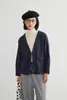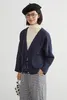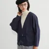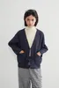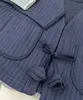 ストライプキルティング 中綿ジャケット カーディガン風 リボンポケット付きアウター NAVY/FREE