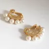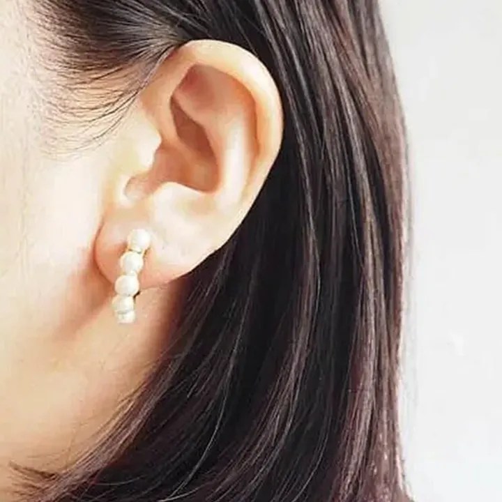 イヤリング【Vintage】/メタル×5粒パールイヤリング アンティークとモダン、フォーマルとデイリー 偏りすぎないミックステイストの表情がたのしめるパールアイテム 特別な日にもかしこまりすぎず、普段の生活にも頼れる存在の ひとさじのアクセントを効かせたパールが主役のイヤリングとピアス。 Oucaでも定番の素材であるパールは、初めてのチョイスとなるガラスパール。 淡水パールや貝パールとはまた異なる、きれいなフォルムでありながらどこかヴィンテージ感の漂う落ち着いた風合いは パールだけれどきれい目になりすぎない、どこかリラックス感の漂うムードで普段使いにもぴったり。 艶やかなガラスパールに合わせた表面感のあるメタルパーツは 全く別の性質でありながら、組み合わさるとそれぞれを引き立てあい特別感ある佇まいに。 凛とした上質さを醸しながら、日常の暮らしの中で気軽に取り入れていただけるようなラフな雰囲気も織り交ぜた、 シーンに合わせて様々な表情をお楽しみいただけるひとしなです。 ◆詳細◆ 均等に丸く美しい艶を放つガラスパールと、ハンドクラフトの質感を残した金属のコンビネーションが特徴的なイヤリング。 Oucaでも定番の素材であるパールは、初めてのチョイスとなるガラスパール。 淡水パールや貝パールとはまた異なる、きれいなフォルムでありながらどこかヴィンテージ感の漂う落ち着いた風合いを醸します。 ガラスパールはいつもよりも少々大粒の5mmサイズをチョイス。 そのパールの丸く可愛らしい輪郭がしっかりと残されたまま5粒連なり均等に並ぶさまは、横から見たときの表情も抜群。 上品さを保ちながらボリューム感も楽しめる、ガラスパールだからこその贅沢なパール使いが魅力的です。 組み合わせたアーチ型の金属部分は、パールとのバランスと様々な角度からの見え方を考え一から作成したOucaオリジナルの原型。 程よくボリュームを持たせているので、パールアイテムながら金属の表情もしっかりと楽しめます◎ 金具はクリップタイプ。 シリコンカバーも装着しやすく、快適にお使いいただけます。 ピアスタイプ(EN140P)もございます。 商品には専用のBOXが無料で付属しますので、ギフトにも最適です◎