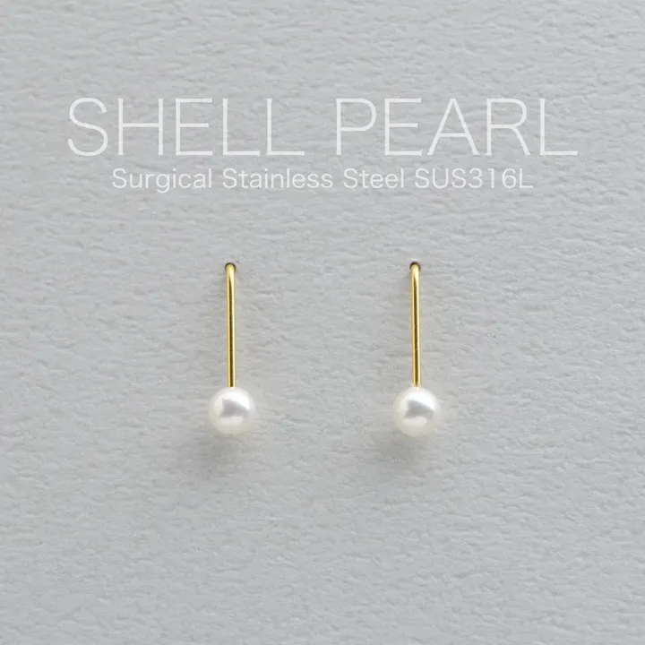上品な印象を与えてくれる繊細で華奢なピアスです。 金属アレルギー対応のサージカルステンレス製で、デリケート肌の方やファーストピアスとしても最適です。つけていることを忘れるほど軽く、ストレスフリーなところもポイントです。 どんなスタイルにも合わせやすいシンプルなピアスは、自分へのご褒美はもちろん、ギフトや大切な人へのプレゼントに喜ばれます。 ゴールドとシルバーのどちらかをお選びいただけます。お肌の色に合わせたり、お手持ちのアクセサリーと相談するのもいいですね。 パールアクセサリーはひとつ持っておくととても便利なアイテムです。 シンプルで好みが割れないデザインなのでプレゼントにも喜ばれます。 ○貝パールとは 貝パール(シェルパール)は、本真珠を模して作られた模倣真珠の一種で天然貝核を使用しているものを指します。特にこのジュエリーに使用している"国産貝ミガキパール"は、職人の手で丹念に磨かれており本真珠に近い輝きを持つのが特徴です。 ○伝統工芸品 日本の国産貝パールは、古くから伝統的な木枠製法で作られており"伝統工芸品"と称されます。手間のかかる製法で高品質な真珠層が作られ、日本の細やかな手仕事と技術は世界的に高く評価されています。 ○汗や皮脂に強い貝パール 貝パールは本真珠に比べて価格が安価ですが、品質が安定しており形状が均一で傷やエクボが少ないです。耐久性が高く汗や皮脂に強いため、日常使いからフォーマルな場まで幅広く利用できます。適度な重みがあり見た目も自然です。 ⚪︎つけっぱなしOK!サージカルステンレスピアス(SUS316L) アクセサリーに使用されるステンレスの種類の中でもSUS316Lは医療器具にも使われるほど人体にやさしいステンレスです。 汗や水に強く、海やプール、温泉でも変色や劣化しにくく、つけっぱなしにしても失敗のない素材です。 金属表面の不動体皮膜が金属と肌が直接触れるのを防ぐので金属アレルギーの方やそうでない方にもおすすめです。 ○環境への配慮 付属のジュエリーボックスに再生紙を使用しています。ギフト用にもふさわしいお洒落な質感と環境への配慮を両立したボックスです。 貝パール直径:約4mm 重さ:約0.2g(ひとつ) 金属パーツ:サージカルステンレス