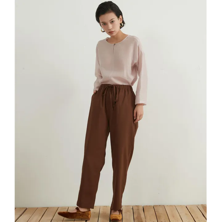 KNNP308リネンミックスリラックスストレートパンツ BROWN/M
