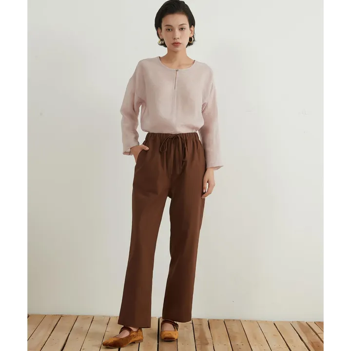 KNNP308リネンミックスリラックスストレートパンツ BROWN/L