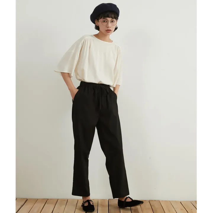 リネンコットン素材のルーズシルエットのリラックスストレートパンツ。 少しゆったりとしたサイズ感で、通気性と着心地抜群。リラックス感のあるシルエットでコーディネートし易いエフォートレスな一枚です。ウエスト部分はゴム仕様で、紐調整も可能です。 シンプルな無地デザインで様々なアイテムと組み合わせしやすいアイテム。 ゆるっとリラックス感のある着こなしや、シャツやカーディガンなどと合わせてキレイめな印象にまとめてみたりと、その日の気分に合わせたスタイリングをお楽しみいただけます。 サイズ  着丈  ウェスト  ヒップ(cm)  S    94   60~94   100  M    95   64~98   104  L    96   68~102   108 素材:リネン25% ポリエステル40% レーヨン20% 綿15% 透け感:なし 生地の厚さ:普通 光沢感:なし 裏地:なし 家庭洗濯:可能 【注意点】 ※撮影商品はサンプルの為、実際の仕様と異なる場合がございます。 ※画像の商品は光の照射や角度、お使いのモニター環境により、実物と色味が異なる場合がございます。スタジオ物撮りの画像が実物の色味に一番近くなっております。 ※予約商品の場合、お届け予定はあくまでも目安となります。 生産の都合上、お届け時期がずれる場合がございますので、あらかじめご了承ください。 ※表記サイズは商品の実寸です。 ※布製品の特性上、サイズ表の実寸法は多少の誤差が生じる場合がございますので、予めご了承ください。 #リネンコットン#リネン#コットン#リラックスパンツ#サステナブル#天然素材 #ウエストゴム#エフォートレス#美脚パンツ#ononesown#レトロガーリー #ストレートパンツ#ポケット付き