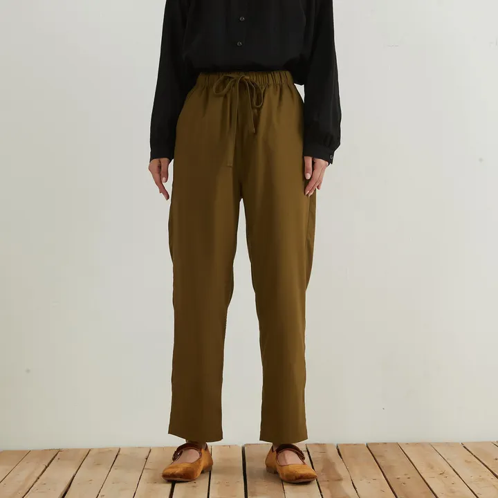 KNNP308リネンミックスリラックスストレートパンツ OLIVE/M