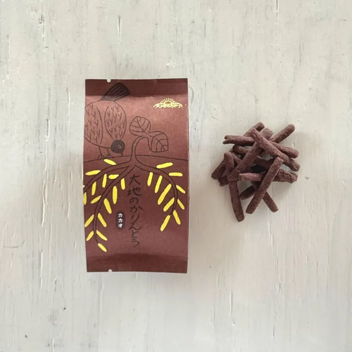 北海道産石臼挽き小麦全粒粉、岐阜県産小麦粉、 平飼い有精卵、粗糖などの厳選素材を使用し、 国産米油で一本一本ていねいに手揚げした “大地”のように力強くて優しい 素材感あふれるかりんとうです。 沖縄県産黒糖の素朴で優しい甘さが広がる「黒糖」、 素材のおいしさを岩塩が引き立てる「塩」、 有機カカオパウダーが芳醇に香る「カカオ」がございます。 ●大地のかりんとうカカオリニューアルについてのお知らせ● 大地のかりんとうカカオがパッケージ、内容量、価格を変更し、リニューアルいたします。 8月28日より出荷開始となります。 ご注文お待ちしております。