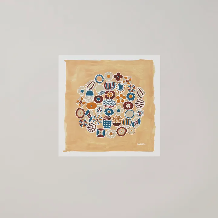 ※フレームは別売りです <デザイナープロフィール > 岡理恵子 (rieko oka) 模様作家。1981年北海道生まれ。北海道在住。北海道東海大学大学院 芸術工学研究科卒。テキスタイルブランド「点と線模様製作所」主宰。季節や天気の移ろい、音や記憶などを題材にした作品は多方面より高く評価され、2012年より定期的に作品集が出版されている。 <About the Paper> 発色の良さと紙の風合いという相反する性質を高いレベルで両立させた高級印刷用紙で、FSC認証※も取得しているヴァンヌーボV-FSの最厚紙を使用。 ※FSC認証とは「森林の管理や伐採が環境や地域社会に配慮して行なわれているかどうか」を評価・認証し、そうした森林に由来する製品(適正管理された森林木材による製品)であることを証明するものです。運営は、NGOであるFSC(Forest Stewardship Council®:森林管理協議会 本部ドイツ)が行っています。 <サイズバリエーション> ・200×200mm ・300×300mm