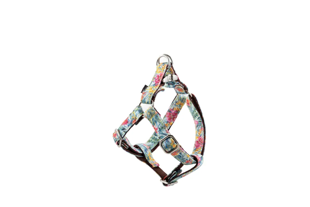 濃淡のあるグリーンの首輪は、夏のマストアイテムのひとつです。 トロピカルなプリントにピンクや黄色の花を添えて、チルスタイルの完成です。この商品は環境保護に貢献するためにリサイクル素材を使用しています。バルセロナの自社工房でデザインされ、地元のサプライヤーとともにハンドメイドされており、カーボンフットプリントの削減を実現しています。 ? 素材裏地:ポリエステル100%リボン(エコテックス認証)表地:リサイクルポリエステル94%、スパンデックス6%バックル:特許取得のアルミニウム製サイドリリース