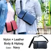 ナイロン×牛革ボディ&ヒップバッグ Navy