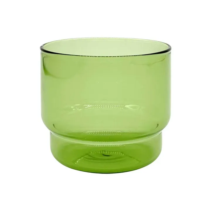 スタッキングできて日常使いにも便利! 気取らないシンプルさが心地いいグラス 「the reset」から、いくつ揃えてもすっきり収納できるスタッキンググラスが新登場です。 シンプルなシルエットだからこそ、美しいカラーガラスが際立つデザインは、毎日使いはもちろん特別な日にも使いたくなるグラスに。 なんと耐熱ガラス製なのでホットドリンクもOK! 冷たいビールやジュースはもちろん、あたたかい紅茶などどんなドリンクをいれてもサマになります。 季節を問わず、一年を通してお使いいただけますよ。 カラーは、クリア / ピンク / グレー / グリーン の4色展開。 どれも落ち着いた色合いで、暮らしになじむカラーをご用意しました。 ほんのり透け感のあるカラーガラスは、食卓にやさしい彩りを添えてくれます。 光を受けるたびに表情が変わり、何気ない時間にも小さなときめきを感じられる存在に。 小さすぎず、大きすぎず。暮らしに寄り添う一杯分。 食事の時や、おやつタイム、ほっと一息つく時など、どんなシーンにもちょうどいい300mlのグラス。 手に収まるサイズ感も良く、毎日使いに最適です。 デザインだけじゃない、使い勝手の良さ 持ったときに手になじむ心地よさと、ほどよい厚みの飲み口が、口当たりをやさしくしてくれます。 食洗機対応の丈夫なつくりながら、重すぎず、毎日気軽に使えるのもうれしいポイントです。 重ねての収納はおまかせあれ 綺麗にスタッキングができるので、いくつか揃えてもすっきり収納できます。 重ねた姿も美しくインテリアに馴染むため、食器棚から見えていても違和感ありません。 ドリンクを入れるグラスとしてだけでなく、デザートカップなどにも活躍しそうなスタッキンググラス。 見た目も使い勝手ももち合わせており、ギフトにもおすすめですよ。