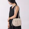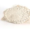 歩く度に揺れるフリンジと透かし編みが軽やかで季節感を楽しめるデザインです。シンプルなスタイリングにあわせれば、コーディネートのポイントに際立ちます。アクセサリー感覚で使っていただけるバッグです。 マクラメ編みは編み棒などを使わず、紐や糸を手で編み、結び目を作ることで模様を生み出していく技法です。その語源はアラビア語のムクラムといわれ、交差して結ぶという意味があります。古くから世界中で親しまれてきたマクラメ編みは、たくさんの結び方や編み方があり、ハンドメイドならではの素朴な風合と美しい編み目模様が魅力です。