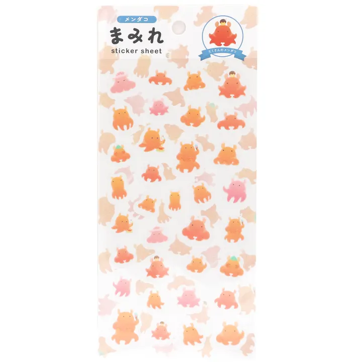 【まみれシリーズ シールシート メンダコ】 ぜ〜んぶ『メンダコ柄』! 手帳などのアレンジにもぴったりなサイズ感! クリア素材なので、透明な小物に貼ったりすると よりかわいいデコレーションに仕上がります♪ たくさん貼って、手帳やノート、カレンダーやお手紙などを 大好きな動物 "まみれ" にさせちゃおう! ◇◇まみれシリーズとは◇◇ 手帳も、プレゼントも、スマホも!? 大好きなあの動物でまみれさせたい! そんなあなたの夢を叶えるシリーズです♪ 【フレークシール】【シールシート】【マスキングテープ】の3種類
