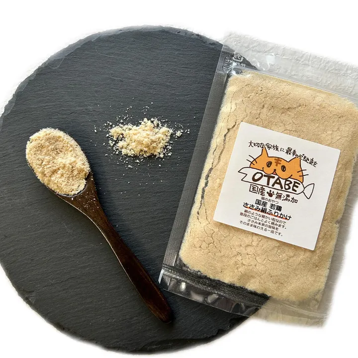 【大切な家族に最幸のごちそうを】 市場で仕入れた国産朝びき鶏を仕入れたその日に加工しています。素材を活かした製法で作られた完全無添加のささみふりかけです。 【ささみの魅力】 ・良質なタンパク質が健康な皮膚や毛並みを作ります。 ・低脂質高たんぱくなのでダイエットにも◎