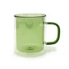 ホットもアイスも楽しめる! まるで宙に浮いているように見える美しいガラスカップ 「the reset」より、内側がカラーリングされたおしゃれな二重構造のガラスカップが登場しました♪ 見た目はまるで宙に浮いているように見えるユニークなデザインで、置いているだけでもおしゃれな雰囲気に。 またガラスが二重のダブルウォールは、保温・保冷効果があり美味しい飲みごろをずっとキープしてくれます。 ※こちらは「ダブルウォールマグ 350ml」のご紹介です。 カラーは、グレー / ダークブルー / ピンク / グリーン / アンバー / クリア の6色展開。 取っ手と内側がカラーガラスになっており、光が当たると透過してまるでステンドグラスのような美しさを放ちます。 一つだけでももちろん素敵ですが、同じ色や色違いでいくつか揃えると、より一層カラーガラスの魅力を楽しんでいただけますよ。 たっぷりサイズの350ml こちらのガラスカップの容量は350ml。仕事をしながら使うのにぴったりなサイズ感です。 おしゃれな見た目だけでなく、層断熱硼珪酸ガラス製で低温・高温に強く、ホットもアイスもこれ一つでお楽しみいただけます。 また保温・保冷機能も備わっており、中に入れたドリンクの美味しい飲みごろの温度をキープしてくれる効果も。 さらに冷たいドリンクを入れた時も結露が出にくいので、テーブルが濡れてしまう心配もなくなりそう。 カラーガラスの切り替えデザインが、どこかレトロ感を感じられる魅力的なデザインのガラスコップは贈り物にもぜひ。 おしゃれで使いやすいコップは、きっと日常に欠かせないアイテムになること間違いなし。