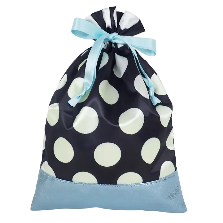 DOT柄がかわいいちょっぴり大人な巾着ポーチ◎ 内側に仕切りもあって使いやすいサイズ。ビビットな色使いがトランクの中を一層POPにしてくれそう!