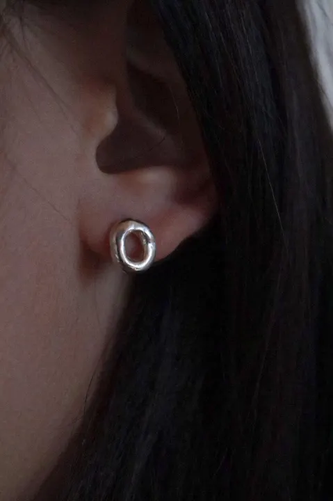 ドーナツ型の小さめピアスです。 自然な歪みと凸凹がどんなスタイルにも溶け込みます。 作り込み過ぎていないナチュラルなデザインをお楽しみください。 Super Shine : 光沢のある仕上がりです。 Recycled silver 925 Size : 0.8×1cm 【ご購入前にご確認ください】 ・今まではホールド感を強める為に製作したSororオリジナルキャッチでしたが、着脱がしやすいよう通常のキャッチへ変更いたしました。 ・付け外しの際は、ポストが折れないよう優しく着脱いただきますようお願いいたします。 ・シリコンのキャッチも付けお送りいたします。シリコンキャッチは劣化と共に外れやすくなるため、用途に応じ通常のキャッチをお使いください。 ・Handcrafted商品の為、一つひとつ多少形が異なります。 ・Silver製品は細かな傷等がある場合がございますが、不良品ではございません。 ・シルバーの特性上、柔らかく傷つきやすい為、商品を取り扱う際は優しくお取り扱いください。
