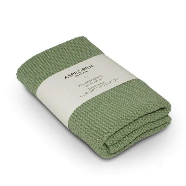 上質でやわらかく、伸縮性のあるキッチンタオル。大判なので様々な用途にご利用いただけます。 日本ではあまり馴染みの少ないニット編みのタオル。 食器拭きとしてはもちろん、キッチンで手拭きタオルとしても。 また、キッチン以外でもお手洗いや洗面所の手拭きタオルとしてもオススメです。 そこに、好みのカラーが掛かっていると気分が上がりますよ。 キッチンタオルにはループが付いております。フック等にかけてお気に入りの空間を。 こちらのキッチンタオルと同じニット編みの小さめディッシュクロスもございます。 環境に配慮したAspegrenのキッチンタオルは全て綿100%。プラスチックは使用していません。