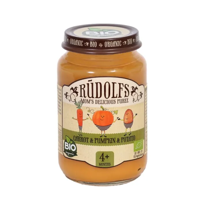ラトビアのオーガニックブランド「Rudolf」 ラトビアより日本初上陸のオーガニックブランド「Rudolf」。 創業以来、家庭的な味で栄養のあるオーガニックフードを世界中に届けています。 離乳食に取り入れたい野菜のミックスピューレ 離乳食に取り入れたい「かぼちゃ・じゃがいも・にんじん」をミックスし、なめらかにすりつぶしました。着色料・酸化防止剤・保存料などの余計なものを一切加えない、有機野菜100%のピューレです。 賞味期間(開封前)が長いため、保存食にストック頂けます。(保存料を使用していないため、開封後はすぐにお召し上がりください。) 生後4か月頃から(乳児用規格適用食品) 乳児用規格適用食品なので、生後4か月頃からお子様もお召し上がりいただけます。 おやきやおかゆの材料、スープなどにお使いいただけます。裏ごしをする手間が省けるため、お忙しい方におすすめです。 ・離乳食に取り入れたい「かぼちゃ・じゃがいも・にんじん」をミックスし、なめらかにすりつぶしました。 ・着色料・酸化防止剤・保存料などの余計なものを一切加えない、有機野菜100%のピューレです。 ・おやきやおかゆの材料、スープなどにお使いいただけます。裏ごしをする手間が省けるため、お忙しい方におすすめです。 ・乳児用規格適用食品なので、生後4か月頃からお召し上がりいただけます。 ・賞味期間(開封前)が長いため、保存食にストック頂けます。 [名称] 有機ミックス野菜ピューレ [原材料名] 有機かぼちゃ、有機じゃがいも、有機にんじん [内容量] 190g [保存方法] 直射日光を避け常温で保管してください [適齢] 生後4ヶ月頃~(乳児用規格適用食品) [取得認証] EU有機認証、有機JAS認証 [輸入者] 株式会社 POT Trading