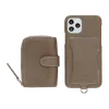 素材は、デミウルーボ の代名詞でもあるフランス産カウレザー。 L字ジップを開けると真ん中にコインスペースがあり、マチが広めで視認性と利便性を兼ね備えています。 コインスペースの両端には、カードや領収書などをドバッと入れることができるポケットがついており、 お札は三つ折り、もしくは4つ折りでしっかり収納できます。カスタムハードケースに装着できるようになっており、 シーンに合わせてスマホと財布をセットで持ち歩くことができます。 装着した状態でもそのままジップが開けられるようになっているので、取り外すことなく使用可能です。 単体としてももちろん、カスタムハードケースとセットでぜひご利用ください。 シンプルなデザインなので男女、年齢関係なくお使いいただけます。プレゼントにも最適です。 <カスタムハードケース> フランス産レザーを使った高級感あふれるレザーハードケース。 カード類を横から入れることができ、 ストラップでぶら下げても落ちないようにサイズ設計されています。 通常のクレジットカードなどは1枚、薄いカードは2枚入れることが可能です。