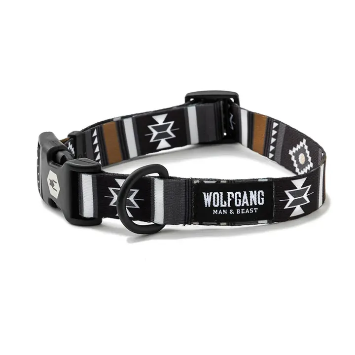 犬用の首輪。 WOLFGANG MAN & BEAST のリードやカラー(首輪)は、車のシートベルトなどにも使われる、強度と柔らかさ、耐久性を兼ね備えたポリエステル100%のウェビング素材を使用しています。 水を吸い込まない、極細のポリエステル糸を非常に密に編むことによって、海や川でも使用可能、汚れや臭いもつきにくい特徴があります。 さらに、ウォッシャブルで洗濯も可能。 アウトドアでの使用にもピッタリです。 製法には、ウェルディング製法( 生地を熱で溶かすことによって生地同士を接着し、強い耐久性を実現する溶着製法 )を採用。 糸による縫い目が無いので、飼い主・愛犬にとって快適な使い心地を実現。通常の縫製による擦れからの糸のほつれが生じることがありません。   WOLFGANG MAN & BEAST のすべてのドッグプロダクトは、こだわりのアメリカンメイド。 ドッグプロダクトは、大切なパートナーである愛犬が、長年愛用できるものであってほしい。 その思いから、選び抜かれた素材を使い、品質にこだわり、WOLFGANG MAN & BEASTのすべてのドッグプロダクトはアメリカ国内で生産されています。 <Sサイズ:対応犬種の目安> ジャック・ラッセル・テリア/パピヨン/マルチーズ/シーズー/ヨークシャーテリア/キャバリア/ホワイト・テリア/ミニチュア・ダックス ...etc <Mサイズ:対応犬種の目安> パグ/コッカスパニエル/シュナウザー/ボストンテリア/フレンチブルドッグ/オーストラリアン・キャトル・ドッグ/スタッフォードシャー・ブル・テリア/ブリタニー/サルーキ/ビーグル/柴犬/ダルメシアン/ウェルシュ・コーギー/ボーダー・コリー ...etc <Lサイズ:対応犬種の目安> ボクサー/ゴールデンレトリバー/ジャーマン・シェパード/ロットワイラー/シベリアン・ハスキー/ブルドッグ/コリー/アメリカン・ピットブル・テリア ...etc 上記の犬種はあくまで目安です。個体によりサイズは変わりますので、購入前に必ず愛犬の実際のサイズを計測して適合サイズを確認してください。 【NewMoon】(ニュームーン)グレーとリッチゴールドを組み合わせた、アイコニックなアートワークが帰ってきました!時代を超越したグラフィックを愛犬と一緒に楽しんでください。