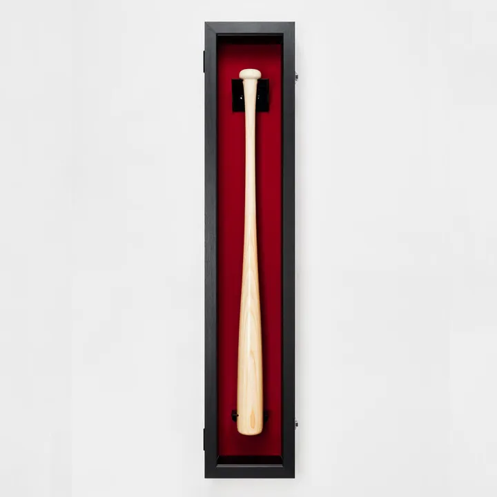 鹿児島県の自社工場にて、ご注文を頂いてから職人が一つ一つ作り上げています。 木製バット・金属バット問わず簡単にかっこよく飾れるよう、バットホルダーをオリジナルでデザインしました。驚くほど簡単にバットを額の中に飾ることができます。ヘッド用、グリップ用の専用ホルダーが付属しているので、バットを固定するために傷をつけたり、汚したりする心配がありません。 縦置き横置きはもちろん、付属の吊具を使用して壁掛けも可能です。どんな場所にも飾っていただけます。 スッキリとした形状のシンプルなフレームで、様々なタイプの空間やインテリアとも相性抜群です。 表面に使用している「UVカットアクリル」は紫外線カット率が97%です。